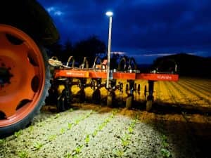 For utmost accuracy and to reduce human errors, also with wider implements and when working in challenging geography on slopes, the inter-row cultivator IC can be combined with the Guidance Interface GI series. The GI series features automatic lateral movement of up to 25cm on each side, ensuring precise weeding. Equipped with a HR colorimetric analysis camera, the GI series keeps the machine on track to protect plants. An optional crop feeler for working in developed crops and LED lights for improved visibility in low-light conditions.